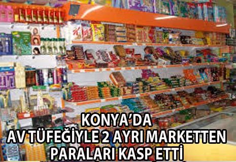 Daha sonra elindeki çantadan çıkarttığı av tüfeğini market çalışanına doğrultan kişi, kasadaki paraları alarak kaçtı. Yapılan ihbar üzerine olay yerine polis ekipleri, şüphelinin yakalanması için çalışma başlattığı sırada, benzer bir ihbar Meram ilçesi Pirebi mahallesi gaz deposu sokaktan geldi. Markete giren kişi bu kez tüfeği bir müşteriye doğrultarak, kasadaki paraları uzattığı çantaya doldurmasını istedi. Paraları alan kaspçı olay yerinden kaçtı.