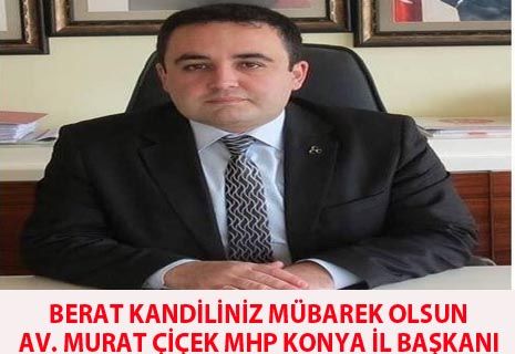 Milliyetçi Hareket Partisi Konya İl Başkanı Av. Murat Çiçek Berat kandili dolayısıyla bir mesaj yayınladı.