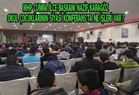 MHP Çumra İlçe Başkanı Nazif Karagöz AKP'nin yapmış olduğu gazeteci Mustafa Yazgan'ın konferansına okul öğrencilerini salona toplayıp alkışlatmalarına tepki gösterdi.