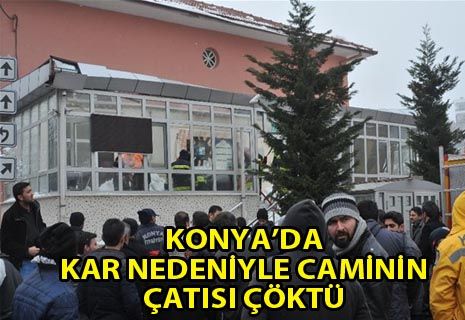 Konya Karaman caddesinde bulunan Uluırmak Muradiye Camii giriş bölümünün çatısı kar nedeniyle çöktü. İhbar üzerine olay yerine gelen ambulans ve İtfaiye olay yerinde müdahale etti.
