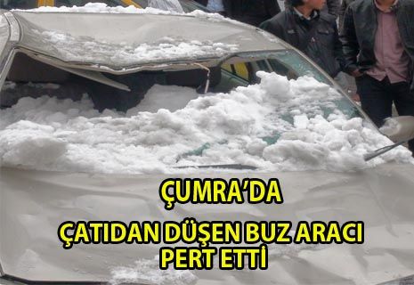 Çumra'da Bakkalbaşı mahellesinde ikamet eden bir vatandaşın aracına çatıdan düşen buz kütlesi sonucu araç Pert oldu.