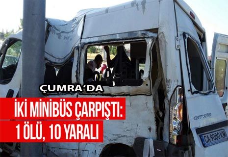 Çumra ilçesi yakınlarında Bulgaristan plakalı minibüs ile bir yolcu minibüsünün çarpışması sonucu 1 kişi öldü 10 kişi yaralandı.