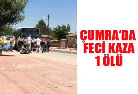 Çumra ilçe Alibeyhüyük mahallesinde öğle saatlerinde Belediye otobüsünün çarptığı motosiklet sürücüsü hayatını kaybetti.