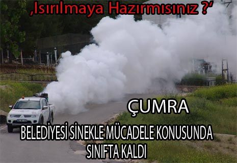 Bu yıl havaların ısınmasıyla birlikte yoğun bir şekilde sivrisinek istilasına uğrayan Çumra, Belediye başkanı Mehmet Oğuz'dan şikayetçi olduklarını belirterek, caddelerin, sokakların ilaçlanmadığı veya tesiri az olan ilaçlamalarla geçiştirildiğini öne sürüldü.