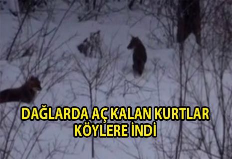 DAĞLARDA AÇ KALAN KURTLAR KÖYLERE İNDİ