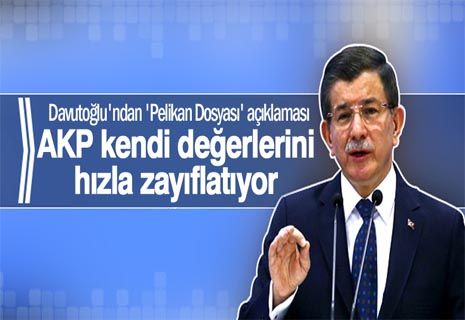 Davutoğlu “Pelikan Dosyası adında bir olaya şahit olduk. Maalesef partide bir çok isme karşı bu yapıldı. En son Diyanet İşleri Başkanı Mehmet Görmez’e yapılan da buna benzer bir durum. Bizi en çok üzen ise dostlarımızın bu konuda suskunlukları olmuştur. Yapılan şey itibar suikastidir, bizi üzen dostlarımızın suskunluğudur” diye konuştu.