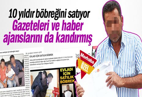 Çumra’da ikamet ettiğini, 18 yaşındaki oğlunun ‘beyinde su toplanması’ olarak bilinen hidrosefali hastalığı olduğu ve ameliyatının gerektiğini belirten Mustafa G. isimli bir vatandaş ameliyat için gerekli parayı temin edemediğini iddia ederek böbreğini satılığa çıkardı. Haberinin yapılması için Merhaba Gazetesi’ne gelen Mustafa G.’nin yapılan araştırmalarda 10 yıldır şehir şehir gezerek aynı bahane ile para topladığı ortaya çıktı. Mustafa G.’nin şimdiye kadar 15’e yakın şehirde aynı usulde böbreğini satılığa çıkardığı ve ulusal haber ajansları dahil, internet sitelerini ve gazeteleri kandırdığı ortaya çıktı. Mustafa G.’nin 10 yıllık “Böbrek satışı” seyahatinde kullandığı yöntemler duyanları şaşkına çevirdi.