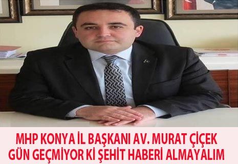 Milliyetçi Hareket Partisi Konya İl Başkanı Av. Murat Çiçek şehit haberlerinin artması üzerine yaptığı basın açıklamasında, Gün geçmiyor ki şehit haberi almayalım dedi.