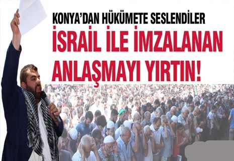 Konya’daki Sivil Toplum Kuruluşları, Anadolu Gençlik Derneği (AGD) Konya Şubesi öncülüğünde Şerafettin Camii’nde Cuma namazı çıkışı bir araya geldi. Namaz sonrası bir araya gelen topluluk, ‘Ankara uyuma, Filistin’e sahip çık. Kahrolsun İsrail, Siyonist köpekler hesap verecek’ şeklinde sloganlar attı. Mescid-i Aksa'da şehit edilen Müslümanlar için kılınan cenaze namazının ardından Aksa ve zulüm altındaki Müslümanlar için dua edildi. Gıyabi cenaze namazına Saadet Partisi GİK Üyesi Hasan Hüseyin Öz, Eski Milletvekili Veysel Candan, Saadet Partisi İl Başkanı Av. Hasan Hüseyin Uyar, AGD Konya Şube Başkanı Mehmet Parlak, Konya Sivil Toplum Kuruluşları Başkanı Muhsin Görgülügil, Memur Sen İl Temsilcisi ve Eğitim Bir Sen İl Başkanı Nazif Karlıer ile çeşitli STK’ların temsilcileri ile çok sayıda vatandaş katıldı. Burada bir açıklama yapan AGD Konya Şube Başkanı Mehmet Parlak, “Siyonist İsrail, er ya da geç yaptıklarının hesabını verecektir. Bizi üzen, bütün bu küstahlıklar karşısında İslam ülkelerinde yöneticilerin ve birçok Müslüman topluluğun tepkisiz kalışıdır. Bizler, 15 Temmuz Kalkışmasındaki üst aklın Siyonizm olduğundan zerrece şüphe duymuyoruz ve hükümetimize buradan çağrıda bulunuyoruz. İsrail Büyükelçisini geldiği gibi geri gönderiniz. İsrail ile 28 Haziran 2016'da imzalanan anlaşmayı yırtıp atınız. İsrail ile yeni bir ticari anlaşma imzalamayın, ticaret hacmini küçültün ve kısa sürede sıfırlayınız. Mescid-i Aksa'nın tasarruf hakkının Müslümanlarda olduğunu gösteriniz. Başta Filistinli Müslümanlar olmak üzere hepimizin yüreğine su serpin” dedi.