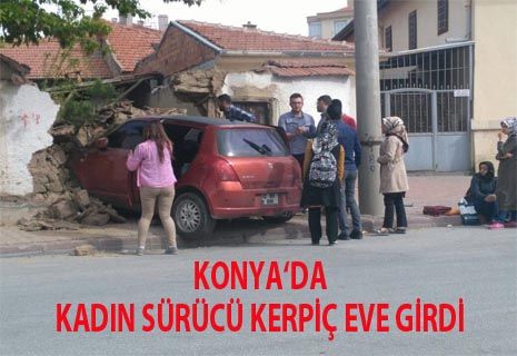 Konya Sedirler mahallesi Yanık Cami civarında bir otomobilin kadın sürücüsü direksiyon hakimiyetini kaybederek kerpiç evin bahçe duvarına çarparak durabildi.