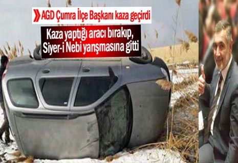 (AGD) ülke genelinde düzenlediği Siyer-i Nebi yarışmasında görevine giderken kaza yapan AGD Çumra İlçe Başkanı Seyfettin Özkan, aracını kaza yerinde olduğu gibi bırakarak görev yerine gitti.
