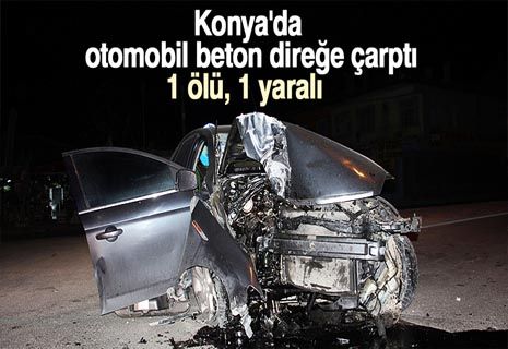 Konya'da otomobilin beton direğe çarpması sonucu bir kişi hayatını kaybetti, bir kişi yaralandı.