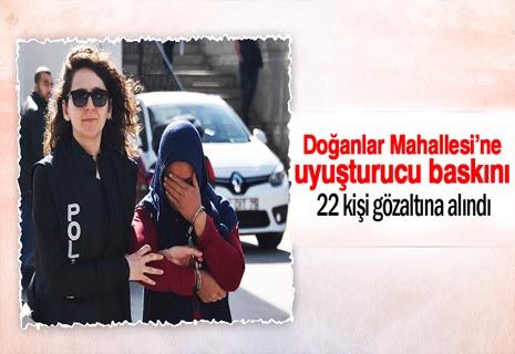 İçişleri Bakanlığı'nın talimatıyla Emniyet Genel Müdürlüğü Narkotik Suçlarla Mücadele Daire Başkanlığı 79 ilde uyuşturucu operasyonu düzenledi. Konya'da da Uyuşturucuyla Mücadele Şubesi ekipleri, 4 ay süren teknik ve fiziki takibin ardından bugün merkez Karatay İlçesi Doğanlar Mahallesi'ndeki önceden belirlenen 27 adrese baskın düzenledi. Operasyonda aralarında kadınların da bulunduğu 22 kişi gözaltına alındı. Evlerde yapılan aramalarda 400 gram esrar, 5 gram eroin, 1 tabanca, 43 av tüfeği fişeği ele geçirildi. Şüpheliler Konya Eğitim Araştırma Hastanesi'nde sağlık kontrolünden geçirildikten sonra Uyuşturucuyla Mücadele Şubesi'ne götürüldü.