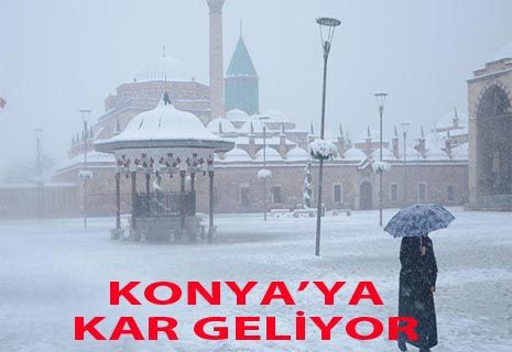 Konya'yı etkileyecek kar yağışının Perşembe günü gündüz saatlerinde başlamak üzere Cuma akşamına kadar etkili olması bekleniyor. Salı günü akşam yağmur beklenirken, Çarşamba günü karla karışık yağmurun yağması tahmin ediliyor. Perşembe günü yağması beklenen kar yağışının geçtiğimiz aydaki kadar etkisi olamasa da Cuma günü akşama kadar etkili olması ve yaklaşık 10 santimetre olacağı tahmin ediliyor.