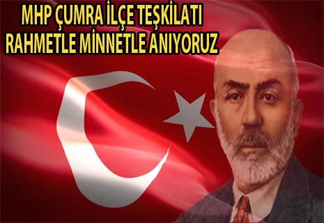 Milliyetçi Hareket Partisi Çumra İlçe Teşkilatı M. Akif Ersoy'un 80. ölüm yıl dönümü dolayısıyla bir mesaj yayınladı.