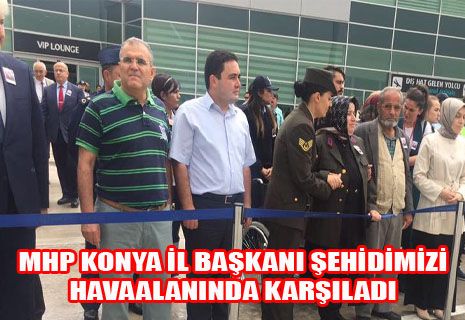 MHP Konya il başkanı Av. Murat Çiçek şehit uz. çavuş Ahmet Erol'u havaalnın da partililerle beraber karşıladı.