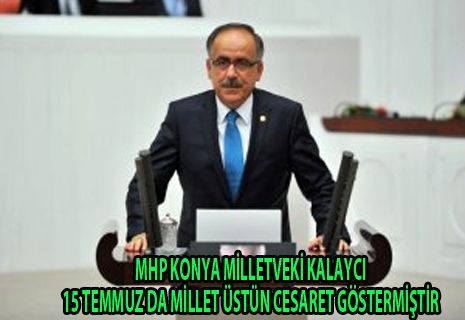 Kalaycı, “15 Temmuz darbe girişimini bir kez daha nefretle ve şiddetle lanetliyorum. Milletimizi, Meclisimizi, millî kurum ve kuruluşlarımızı bombalayıp kurşunlayacak kadar gözü dönen FETÖ'cü canilerin darbe girişimi hamdolsun başarıya ulaşamamıştır. Darbecilere karşı canı pahasına mücadele veren, tanklara, helikopterlere, uçaklara, en ağır silahlara, kurşunlara ve bombalara karşı tereddüt göstermeden göğsünü siper ederek darbe girişimini püskürten, üstün cesaretini ve demokrasi tercihini tüm dünyaya gösteren aziz Türk milletinin bir ferdi olmaktan gurur ve onur duyuyorum. Türk milleti hainlerden büyüktür, demokrasi darbeden büyüktür. İster FETÖ ister PKK PYD isterse de IŞİD olsun Türkiye'yi geçemeyecekler, Türk milletini yenemeyeceklerdir. Türkiye zalimlere yem olamayacak kadar kudretlidir. Bir olalım, Türkiye'nin millî dava ve istiklaline bağlı kalalım” diye konuştu.