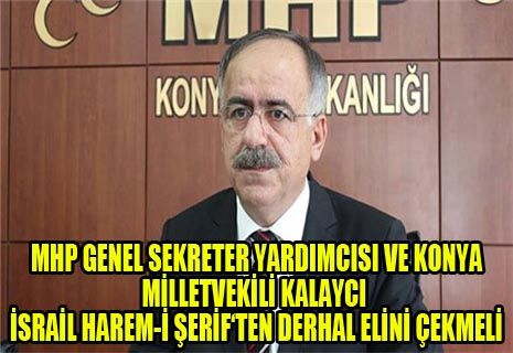 MHP Konya Milletvekili ve Genel Sekreter Yardımcıcı Mustafa Kalaycı, İsrail, Harem-i Şerif'ten derhal elini çekmeli dedi.