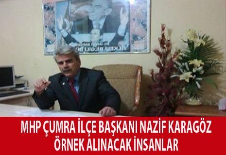 Milliyetçi Hareket Partisi Çumra İlçe Başkanı Nazif Karagöz, her şeye rağmen fedakarlıklardan kaçınmayan örnek alınması gereken Ülkücüler mutlaka dikkate alınmalıdır.