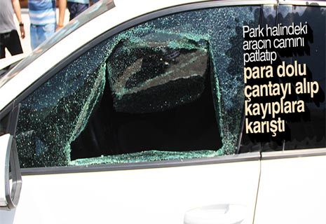 OTOMOBİLİN CAMINI PATLATARAK 55.00 LİRAYI ALDI