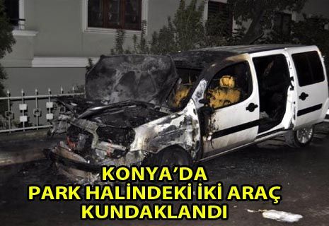 Olay Selçuklu ilçesi Kaşgarlı Mahmut mahallesi Diksaray sokakta park halinde bulunan 06 ADR 852 plakalı hafif ticari araç ile 42 DCR 53 plakalı otomobil üzerine yanıcı madde dökülerek ateşe verildi.