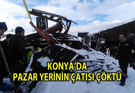 Konya'nın Akşehir ilçesinde Perşembe günleri kurulan ilçe merkezindeki semt pazarının çatısı, biriken karlar nedeniyle sabah saatlerinde aniden çöktü. Esnaf ve pazara gelen vatandaş, çatının metal parçaları ile düşen karların altında kaldı. Yapılan ihbar üzerine olay yerine çok sayıda itfaiye ve ambulans geldi. Enkaz altında kalan vatandaşlar için kurtarma çalışmaları devam ediyor.
