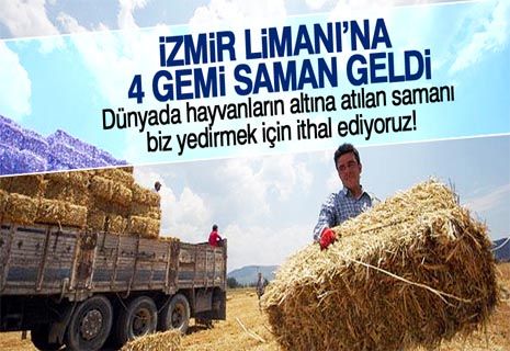 Besleyici değeri olmayan ama çiftçiler tarafından yoğun bir şekilde kullanılan samanın fiyatlarındaki yükseklik çiftçiyi endişelendiriyor. Yaşanılan fiyat artışı sonrası çare olarak yine ithalata başvuruldu. Saman piyasa fiyatını düşürmek için ithal edilen 4 geminin İzmir Limanı'na geldiği iddia edildi. İthal samanın piyasaya girmesi ile fiyatların bir miktar düşeceği tahmin ediliyor.
