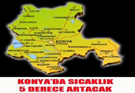 Konya-Karaman- Aksaray ve Niğde genelinde sıcaklık 5 derece artacak.