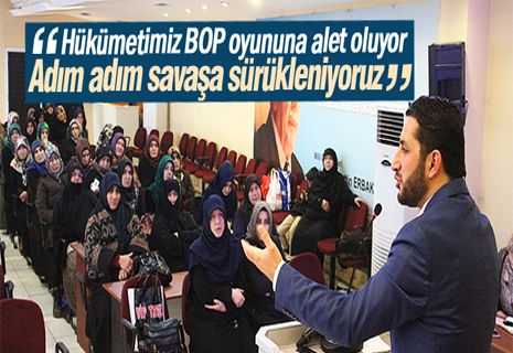 Milli Görüş’ün Batı’nın oyununu bozduğunu ifade eden Aydın, şöyle konuştu: “1897’de Basel Konferansı’nda ‘100 yıl sonra İslam’ı bitireceğiz’ diye karar aldılar. Ama biz ne yaptık. 1997’de iş başındayken İslam Birliği’ni kurduk. BOP’u büyük İsrail devletini kurmak için uyguluyorlar. İsrail’in sınırları şu an resmi olarak belli değil. Müttefikimiz dediğimiz ABD Misak-ı Milli sınırlarını kabul etmiyor. Şimdi uçak düşürülüyor, başa tezgahlar kuruluyor adım adım savaşa sürükleniyoruz. Papa, 3.dünya savaşına girileceğini söylüyor. NATO ‘Müslümanlar için savaşmayız’ diyor. Biz de menfaat kazanacağız diyerek savaşa giriyoruz. Maşalar eliyle savaş yaptıracaklar, kazanan Batı olacak. Bu oyunu sadece Saadet Partisi dur der. Bu oyunu bozamazsak Suriye’nin düştüğü duruma biz de düşeriz.”