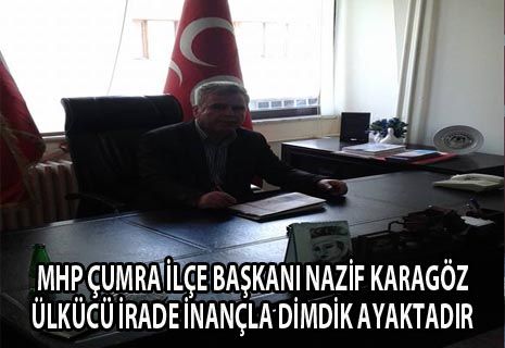 Milliyetçi Hareket Partisi Çumra ilçe başkanı Nazif Karagöz, Ülkücü İrade, İnançla dimdik ayaktadır dedi.