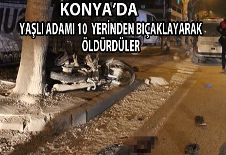 Konya'da motosikletiyle seyir halindeyken 2 kişi tarafından durdurularak darp edilen 65 yaşındaki şahıs 10 yerinden bıçaklanarak hayatını kaybetti.
