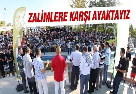 Kültürpark’da düzenlenen basın açıklamasında konuşan Konya İHH Başkanı Hasan Hüseyin Uysal Mısır, Suudi Arabistan gibi "kukla" ülkelerin, İsrail’in Kudüs’te yaptığı zulme karşı değil Müslüman Katar'a saldırmaya çalıştıklarını söyledi. Bu ülkeleri yönetenlerin, Batı'nın istekleri doğrultusunda çalıştığını ifade eden Uysal, "Karanlığın en yoğun olduğu zamanda, sabahın ışıklarını görmek gerekiyor. Hiçbir zulüm ilelebet sürüp gitmedi. Dolayısıyla ümitsiz olmak mümine yakışmaz" dedi. Mazlum Filistin halkının yanında durulması gerektiğini vurgulayan Uysal, "İsrail, biz meydanlarda olduğumuz için, 'Mescid-i Aksa'nın girişinde bulunan metal dedektörleri kaldıracağını' söyleyerek geri adım attı. Onun için meydanlardan, eylemlerden geri adım atmak yok. Zalimlere karşı dimdik ayakta durarak sesimizin çıktığı kadar bağıracağız. Allah kazamızı mübarek etsin" ifadelerini kullandı.