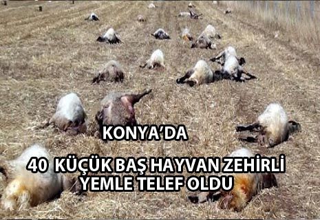 Konya'nın Karatay ilçesinde 40 küçük baş hayvanın otladıklara alana bırakılan yemle zehirlendiği iddia edildi.