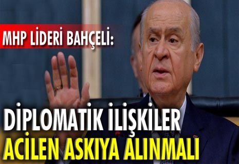 MHP Genel Başkanı Devlet Bahçeli "Şu anda Hollanda’yla diplomatik ilişkilerin askıya alınması, diğer yaptırım ve tedbirlerin sırasıyla hayata geçirilmesi acil bir ihtiyaçtır" dedi.