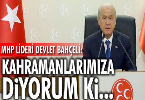 BAHÇELİ, ülkemizin çok hassas bir süreçte olduğunu ve adeta sırat köprüsünden geçildiğini söyledi. Bahçeli, "Türkiye büyük bir risk ve tehdit dalgasıyla pençeleşmektedir. Bedeli ne olursa olsun, Türkiye Cumhuriyeti'ni yaşatma ve gelecek nesillere taşıma görevimizi ihlal ve ihmal etmeyeceğiz. PYD-PKK'yı zaman ve mekanın her bölümünden kazıyarak söküp atmak Türkiye'nin haysiyet ve şeref meselesi olmalıdır. Kahramanlarımıza diyorum ki, ne kadar katil örgüt varsa gidin bulun, alayını birden imha edin. Biz yanınızdayız, sonuna kadar arkanızdayız" dedi.