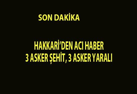Son dakika haberi : Çukurca ilçe Güven Dağı bölgesinde güvenlik güçleriyle teröristler arasında çıkan çatışmada 3 asker şehit oldu, 3 asker yaralandı. Çık sayıda teröristin öldürüldüğü bildirildi.