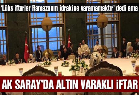Cumhurbaşkanı Recep Tayyip Erdoğan, dün akşam Cumhurbaşkanlığı Sarayı’nda milletvekillerine iftar daveti verdi. Ramazan ayından önce yaptığı bir konuşmada, “Lüks iftarlar Ramazan ayının idrakine varamamak demektir” diyen Erdoğan’ın davetine katılan milletvekillerinin sosyal medyada paylaştığı fotoğraflarda, altın varaklı kadehlerle donatılmış görkemli iftar sofraları yansıdı.