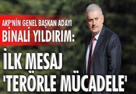 Türkiye'nin merakla beklediği sorunun cevabı yanıt buldu. AKP Genel Başkan adayı Ulaştırma Bakanı İzmir milletvekili Binali Yıldırım oldu. Binali Yıldırım'ın aday olarak açıklandığı toplantıya Başbakan Ahmet Davutoğlu katılmadı. İsminin açıklanmasının ardından açıklama yapan AKP Genel Başkan adayı Binali Yıldırım, "Milletim rahat olsun, bu terör belasını Türkiye'nin gündeminden çıkaracağız" dedi. Yeni dönemde başbakanlık görevini de alacak olan Binali Yıldırım'ın ilk mesajının "terörle mücadele" olması da ayrı bir önem taşıyor.