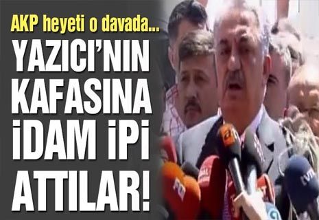 Ankara'da Sincan Cezaevi'nde görülen Akıncılar Üssü davasını takip eden AKP Genel Başkan Yardımcısı Hayati Yazıcı önderliğindeki AKP heyeti, vatandaşların 'idam talebiyle' karşılandı. Yazıcı konuşurken; protesto amaçlı atılan bir idam ipinin de onun üzerine düştüğü gözlendi.