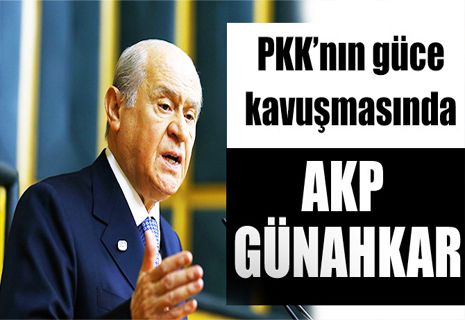 Bahçeli, “Şayet PKK bugünkü aşamaya geldiyse, şayet şu anki güç ve imkanına kavuşmuşsa bunun günahı bütün iş birlikçi mihraklardan önce AKP’nindir” dedi.