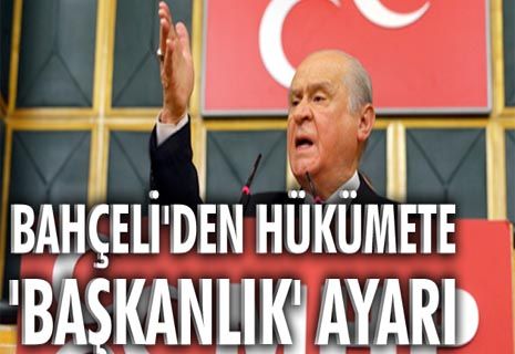 MHP Genel Başkanı Devlet Bahçeli, yeni anayasa ve başkanlık sistemi konusunda hükümete seslenerek, "AKP başkanlık sistemiyle ilgili inadını sürdürecekse karşımıza iki seçenecek çıkacaktır. AKP bir anayasa hazırlığı varsa, mutabık kalınan diğer maddelerle birlikte TBMM'ye getirmelidir. Vekiller vicdanlarıyla oy kullanacaklardır. Bu anayasa değişiklik teklifi ya 367'yi aşarak kanunlaşacak, ya da 330'un üzerinde kalarak referanduma sunulacaktır. MHP her karara saygılıdır. Bizim düşüncemiz mevcut sistemin güçlendirilmesidir. Milletimiz aksini söylecek olursa buna da diyeceğimiz bulunmayacaktır" dedi.