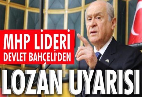 MHP Genel Başkanı Devlet Bahçeli, Cumhurbaşkanı Recep Tayyip Erdoğan’ın Lozan çıkışıyla ilgili, “Eksiği vardır, fazlası olmuştur; bırakalım da bunu namuslu tarihçiler konuşsun. Bize düşen Lozan’ı deldirmemek, meşruiyetini yıpratmamaktır. Lozan’da; lord planları askıya alındı, Türkiye Cumhuriyeti’nin ilam ve ilanının hukuki gerekçe ve şartları oluşturulup olgunlaştırıldı” dedi.
