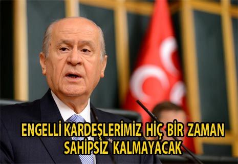 Milliyetçi Hareket Partisi var olduğu müddetçe engelli kardeşlerimiz hiçbir zaman sahipsiz kalmayacak, yalnız olmayacak, umutları boşa çıkmayacaktır." ifadesini kullandı.