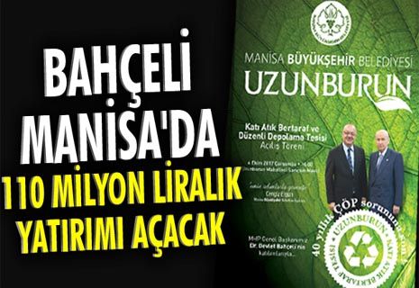 Manisa'nın 40 yıllık çöp sorununa neşter vuracak olan Uzunburun Katı Atık Bertaraf Tesisi'nin açılışı, 4 Ekim'de düzenlenecek törenle gerçekleştirilecek. Büyükşehir Belediyesi'nin büyük yatırımlarından birisi olan 110 milyon liralık Uzunburun Katı Atık Bertaraf Tesisi'nin açılışını, MHP Genel Başkanı Devlet Bahçeli yapacak. Açılış günü karayoluyla saat 14.30'da Manisa'ya gelecek olan Bahçeli, ilk olarak saat 15.00'de Büyükşehir Belediye Başkanı MHP'li Cengiz Ergün'ü makamında ziyaret edecek. Bahçeli, daha sonra Belediye Başkanı Cengiz Ergün ile birlikte saat 16.00'da açılış alanına geçerek tesisi hizmete açacak. Bahçeli, ardından partisini il başkanlığını ziyaret ederek, partililerle bir araya gelecek. Açılış öncesinde saat 14.00' de ünlü sanatçı Mustafa Yıldızdoğan açılış alanında sahne alarak Manisalılara konser verecek. Manisalı vatandaşlar açılış günü çeşitli noktalardan otobüsler ile ücretsiz olarak Uzunburun Katı Atık Bertaraf Tesisi'ne taşınacak.