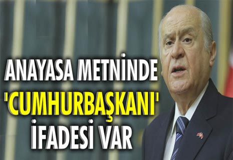 Anayasa değişikliği ile ilgili çalışmalar sonlandıktan sonra gerekirse milletimizden görüş almaktan çekinmeyelim. MHP daha önce açıkladığı anayasal kapsamdaki kırmızı çizgilerine, ilke ve esaslarına bağlı olmak şartıyla milleti ve ülkesi için her olumlu, her anlamlı teşebbüse zaten vardır ve çoktan hazırdır. Bu süreçte CHP naz etmemeli, kapris yapmamalı, geri durmamalıdır. Başbakan'a kapıları açıksa teklifi bir de biz görelim diyorlarsa, buyursunlar kafa kafaya verelim, el ele omuz omuza gönül gönüle fiili açmazı giderelim" dedi. Bahçeli toplantı sonrası gazetecilere yaptığı açıklamada ise "Taslak metinde Cumhurbaşkanı ifadesi var" dedi.