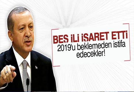 Cumhurbaşkanı ve AK Parti Genel Başkanı Tayyip Erdoğan, son MKYK toplantısında İstanbul’dan sonra 5 ilde belediye başkanının da 2019’u beklemeden ayrılacağını söyledi. MKYK sonrası ilk olarak dün AK Partili Düzce Belediye Başkanı görevinden istifa etti.