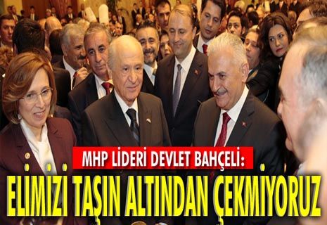 MHP Genel Başkanı Devlet Bahçeli, "Memleket meselelerinde elimizi taşın altından çekmiyoruz ama bu, hükümet ortağı olacağız anlamını taşımaz. Bu tür sorular 65. hükümeti tartışmaya açmak demektir. Bizim buna hakkımız yok. Halihazırda 316 milletvekilinin desteğiyle 65. hükümet görevinin başındadır" diye konuştu.