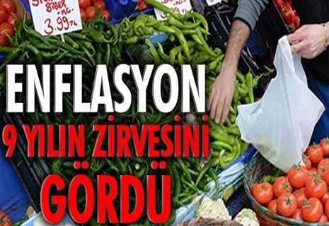 Yıllık enflasyon 9 yılın zirvesine, çekirdek enflasyon ise 14 yılın zirvesine çıktı. Türkiye İstatistik Kurumu (TÜİK) verilerine göre, ekim ayı itibarıyla 12 aylık ortalamalar dikkate alındığında, tüketici fiyatları yüzde 10,37, yurt içi üretici fiyatları yüzde 14,47 arttı. Aylık bazda TÜFE yüzde 2,08, Yİ-ÜFE 1,71 artış gösterdi.