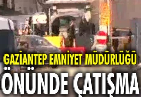 Gaziantep Emniyet Müdürlüğü bahçesi girişinde saat 15.23 sıralarında çatışma çıktı.