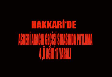 Hakkari Yüksekova da askeri aracın geçişi sırasında PKK'lılarca bomba patlatıldı. 4'ü ağır olmak üzere 17 asker yaralandı.